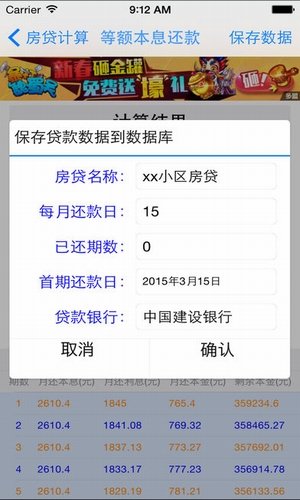 3、贷款计算结果记录保存;