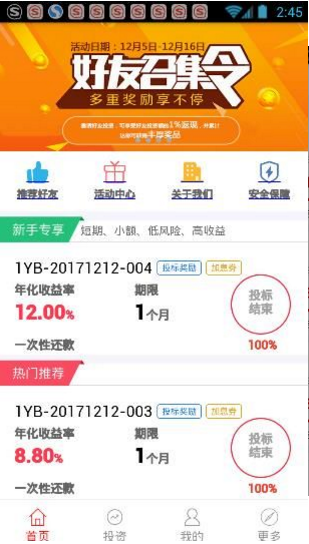 6.新手注册送:投资返现金,邀请好友返现金加礼品。