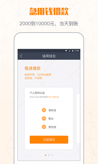 3.速度快:秒出额度,闪电借款,当天到账;