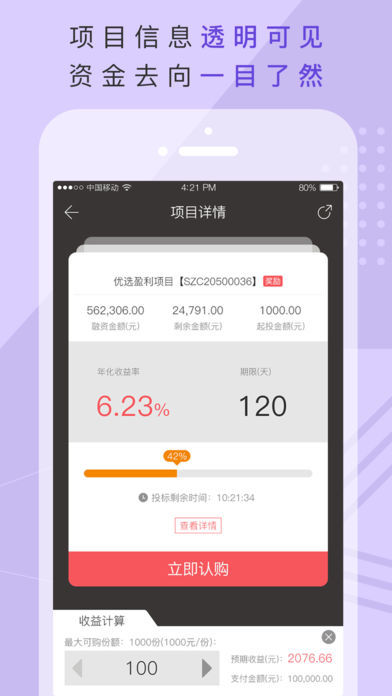 2、依托平台实力雄厚的资产端资源,为线上线下客户提供创新、便捷、全名、有价值的多元化资产理财增值服务。