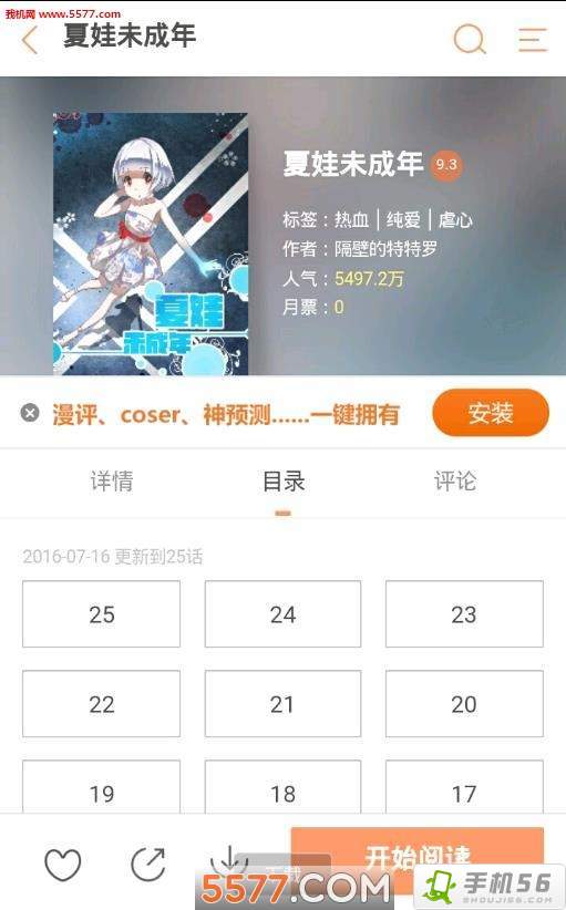2.阅读舒适:高清的正版漫画图片,流畅的翻页效果,自适应各种手机屏幕分辨率,让你有种看实体漫画书的畅快感觉。