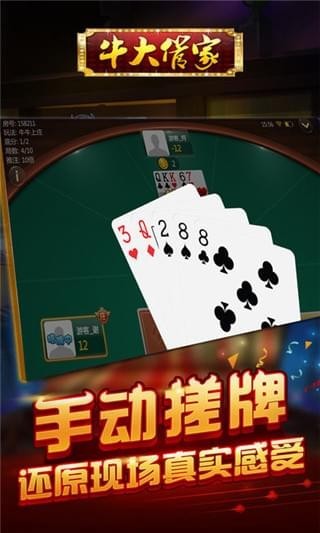 牛大管家游戏是一款可以与亲友实时语音对局的斗牛游戏应用,牛大管家手游特色的手动搓牌帮您还原真实的打牌感受,万人在线随时开局不用苦等,还能和朋友约局对战。