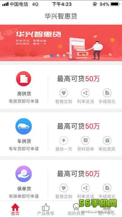 手机56为您提供华兴智惠贷APP下载!一款非常不错的手机借贷工具,产品丰富,大数据支持的智能审核功能,让用户告别漫长的等待,通过率高、到账极速,您必备的随身ATM!