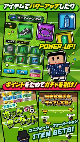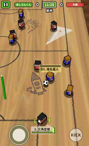 由推出《DropEraser》的团队SAT-BOX推出,学校系列中的最新作!大家都可以在桌子上玩到足球了!操作可爱的角色,开始喧闹欢乐的足球比赛!即便是轻量玩家也可以获得十足乐趣的足球游戏!利用手机屏幕左方的虚拟控杆利动,右方虚拟按钮作出传球和射门的进作。除了练习模式及线上竞技外,更支持一部装置二人对战的模式!更可以编成自己心仪的队伍,挑战全国排名赛。