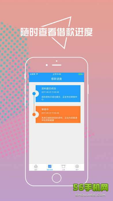 5、操作便捷:借款进度实时查询,到期还款提醒,借还方便。