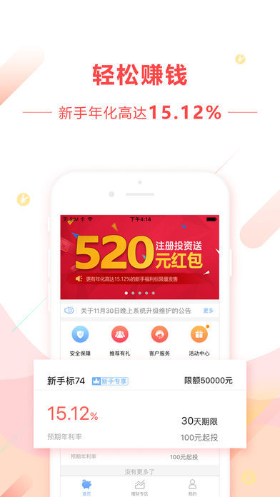 1、注册投资即送:520元理财红包。