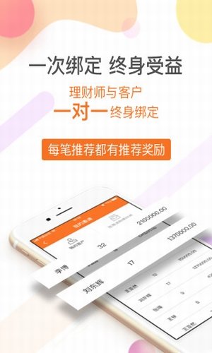 理财师与客户一对一终身绑定,每笔推荐都有推荐奖励