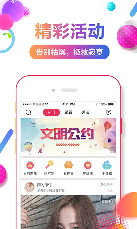 开心果直播,汇集众多同颜值的主播,每天24小时不间断的为您带来各类精彩的才艺表演,互动、游戏、交友,最迷人的歌声、最动感的舞蹈等待你的加入!