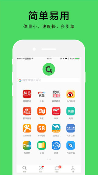极简设计:轻量简洁的浏览器界面,超快启动速度;