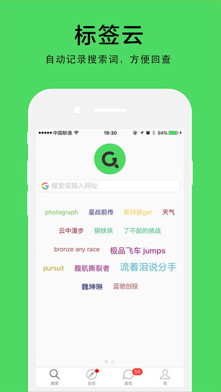 标签云:自动记录搜索词,建立你的个性标签云;