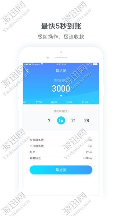 2.操作简便:3分钟注册,秒速授信,最快5秒到账。