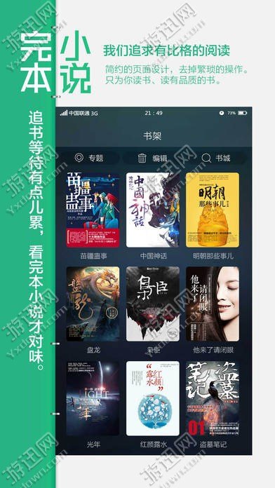 完本小说app是一款热门的掌上阅读器应用,海量免费书籍,精选专题,快速下载,为您最轻松愉快的阅读。xiaohei手游网小编为您力荐!