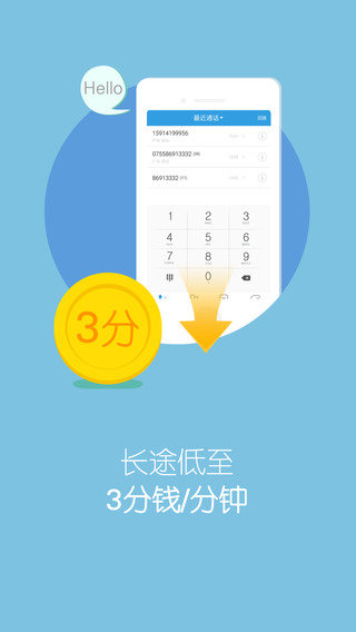 特点一:一键安装,注册即送40分钟免费通话,活动优惠多多