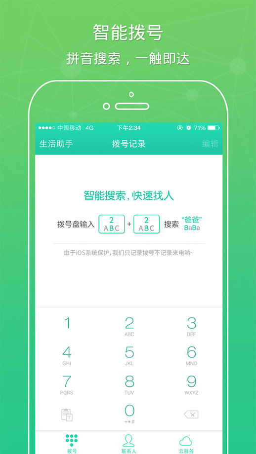 2、拨号盘智能搜索,方便快捷