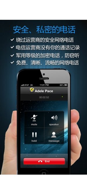 •加密电话,私密电话 √军用等级的加密网络电话 √输对密码方能接起电话 √清晰圆润的高品质通话质量