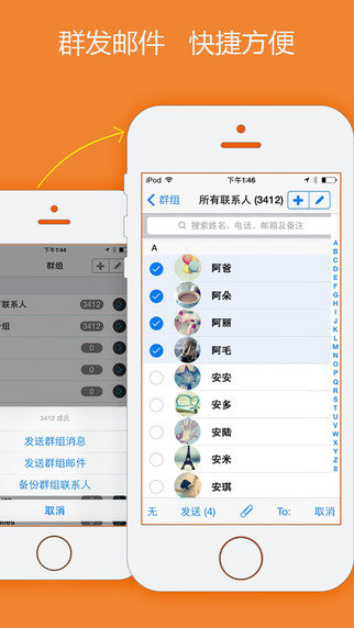 合一通讯录是一款智能联系人&群组管理与同步、备份联系人手机通讯应用。多种通讯录管理方式,两种拨号方式,任您挑选。群发邮件,更加快捷方便。