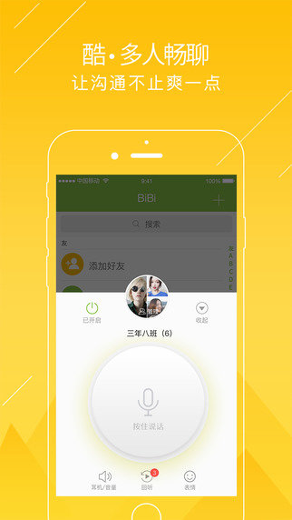 2.1V1亲密对讲: -以手机号建立联系,好友一个都不少,联系更紧密 -再也不怕亲密关系的留言被淹没在众多工作群里,因为只需BiBi一下