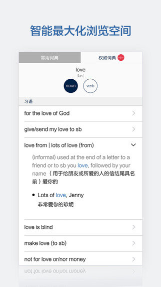 【最权威】完整收录《柯林斯COBUILD高阶英汉双解学习词典》和《权威词典》的全部内容;包含500多万双语及权威例句与141本专业版权词典,小体量大容量。