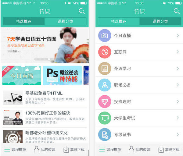 离线下载、课程学习历史,百度传课视频课程的每一个功能都满满带着爱。通过手机,无论是在家里,咖啡厅,地铁上还是小公园,都可以拿起手机就可以轻松学习。跟长腿偶吧学韩语,跟金发姐姐感受外国文化,甚至会有阿姨教你做炸鸡,在百度传课,众多不一样的课程等待你的发掘。