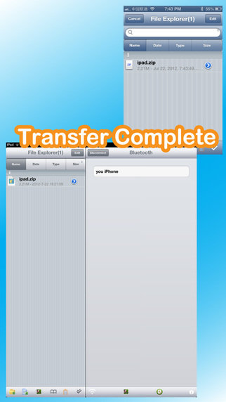 蓝牙通让您使用蓝牙连接将文件从您的iPhone/iPod或iPad传输到其他iPhone/iPod或iPad,无文件类型限制.