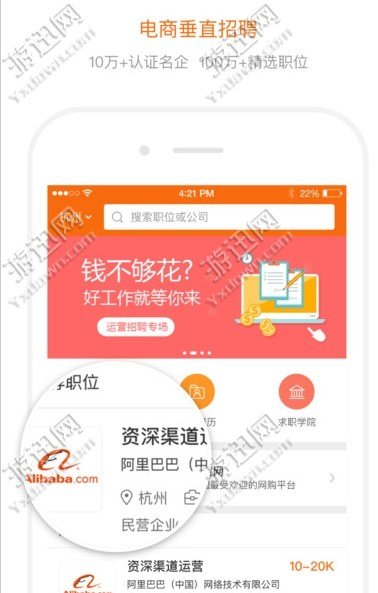 专注电商求职与招聘!精准匹配职位,随时随地与老板聊offer!懂电商,更懂招聘,让找工作变得更轻松!