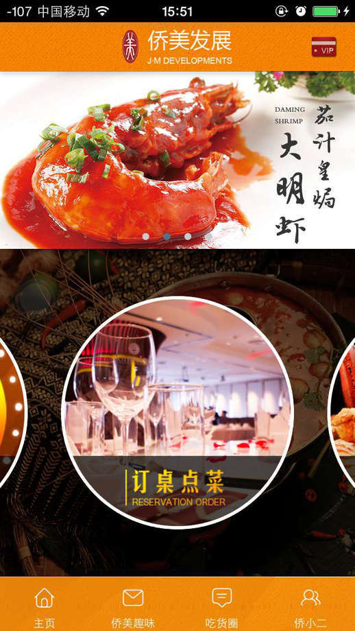侨美发展是一款美食服务类软件,多家餐饮名店,优美的环境,给你最好的美食体验,xiaohei手游网小编强烈向您推荐!