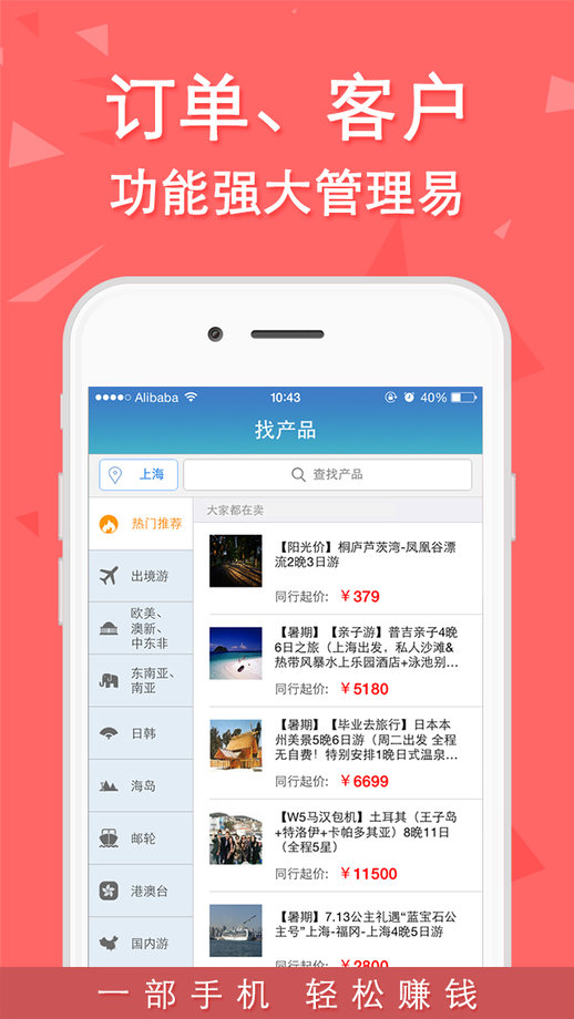 旅游圈是上海匹匹扣网络科技有限公司旗下的在线旅游同业分销平台,是目前国内领先的具备出境旅游、国内短线、国内长线、自由行、邮轮等全线,让您一部手机,轻松赚钱
