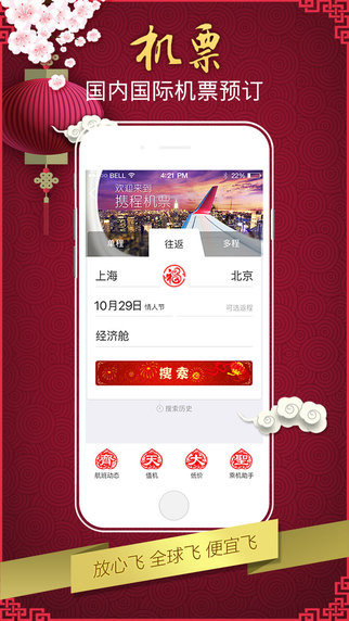 机票:查询并预订国内所有航线及国际主流航线的往返机票;