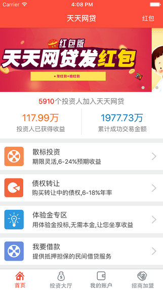 天天网贷是一款专业的金融服务手机工具。提供抵押担保的民间借贷服务,用体验金投标,无需本金,让您坐享收益。xiaohei手游网小编推荐!