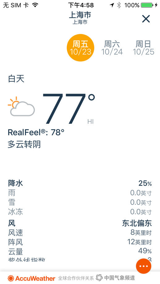 我们是最值得信赖的天气预报品牌,根据我们发布的当地天气预报规划一天的行程安排!iPhone版AccuWeather能快捷方便地为您提供最新天气信息,扫除您的后顾之忧,从穿衣到出行,让您从容做出各项安排。