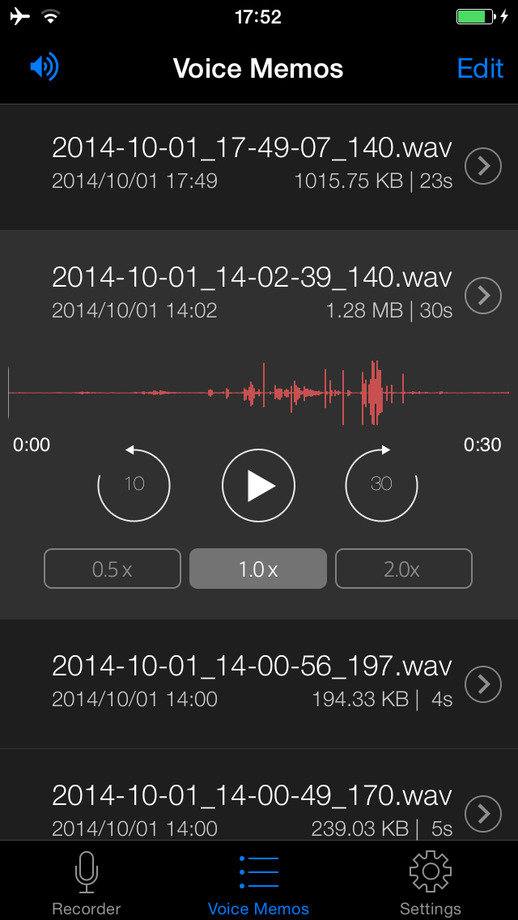 VoiceRecorderHD是一款界面精美、功能全面的录音机软件,适合商务人士、音频专业人士、录音师、记者和需要管理语音备忘录的任何人。