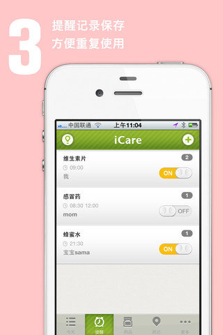 iCare吃药提醒是一款实用的提醒服药手机应用。每日多次提醒,满足各种需求。家庭药品保质期备忘本,坚持不吃过期药。查找周围记录你最近的医院和药房,出差、旅行必备。