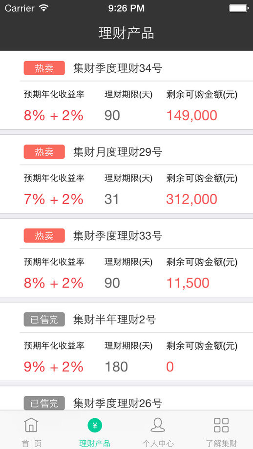 集财是一款实用的金融理财手机应用。随时随地轻松理财,项目收益及时更新,还本付息一目了然,产品上线及时提醒,赚钱良机绝不错过,充值提现一键搞定,你还在等什么,抓紧下载吧!!!