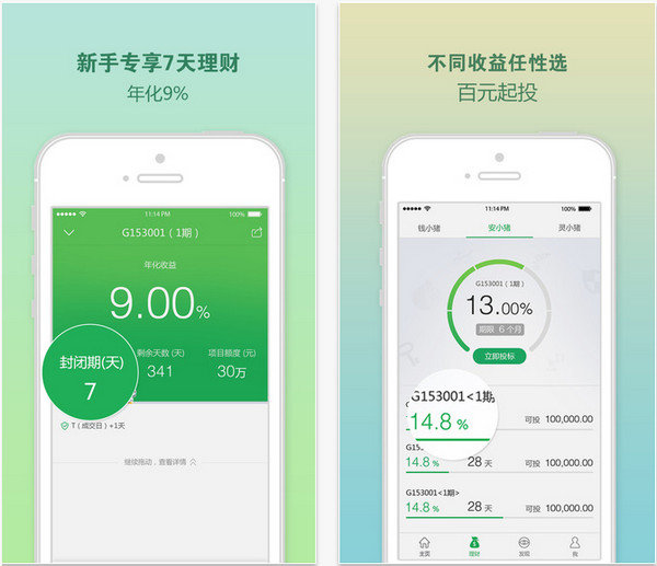 1、低门槛,高收益:100元起投,享受9%-14%的年化收益;