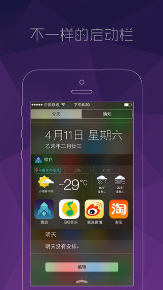 不一样的启动栏,独家天气部件,支持快速启动,一键分组清晰简洁,设置功能一应俱全。