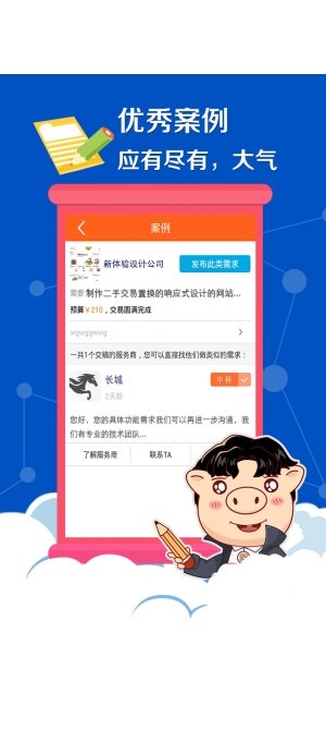 猪八戒是一款装修设计开发达人,商标注册创业服务手机应用。免佣金发布需求,全新订单详情页,全程跟进需求,收藏店铺和服务,更方便。