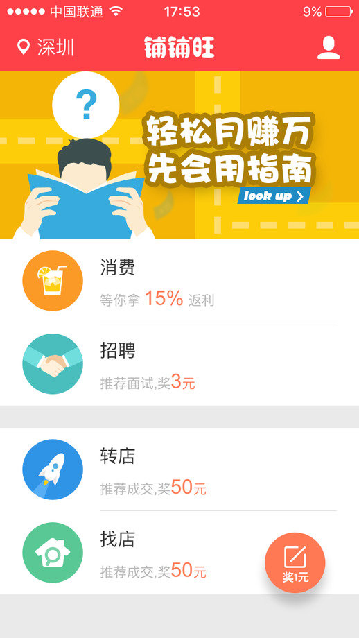 小旺的赚钱任务丰富、灵活自由、适合城市各类人群,包括发布转让、求租、招聘信息,推荐转店、找店、求职者,以及签约转店、找店、招聘合作等。