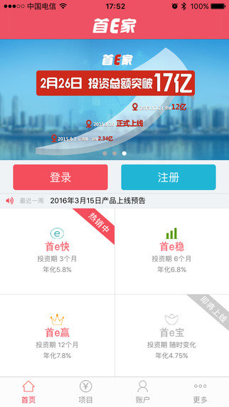 首E家是一款安全有保障的私人资金管理手机应用。为用户提供优质项目和实用的建议,帮助用户轻松玩转理财投资。你还在等什么,抓紧下载吧!!!