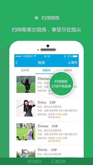 5.约球陪练,快来我们的约球陪练功能,找美女,找帅哥,找教练,你想要的这里都有!