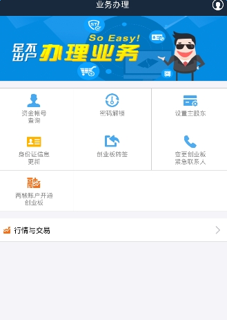 在线交易 能够提供深沪两市各种证券品种的交易、帐户查询、业务办理等各项证券投资业务功能,包括买入、卖出、撤单、各类资金股份、成交查询、修改密码等。