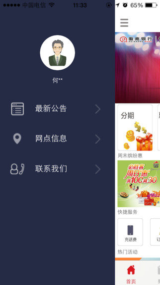 快捷服务功能 为您提供在线分期、惠享金分期、网上商城、卡片申请、活动查询等快捷服务。