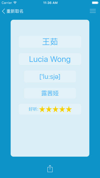 输入中文名,选一下性别,长名还是短名,发音短的还是发音长的,然后就可以得到一些好听的,和中文名谐音的英文名喽,觉得不满意还可以重新换一批哦