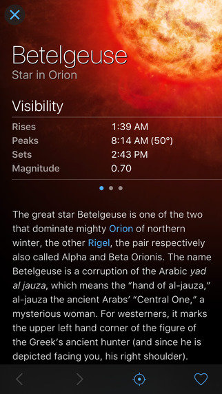 1.苹果看支持:看到即将到来的天文事件的日历,满月,流星雨,日食等等。天空指导你可以发送一个通知事件即将发生在天空你的位置。甚至它会提醒你当国际空间站将飞过。
