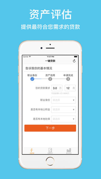 1、一键贷款:快速借款,30秒填表申请,最快1天到账!借贷门槛低,额度灵活,合法合规,承诺隐私安全。