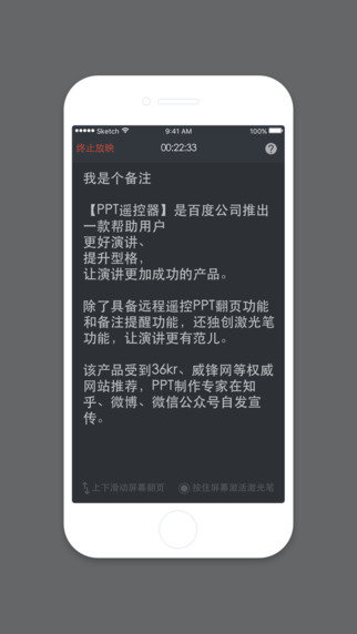 PPT遥控器是一款自带激光笔功能的演讲神器。此软件支持Window/Mac上的PowerPoint、Keynote、WPS。更多功能,等你来点击体验。