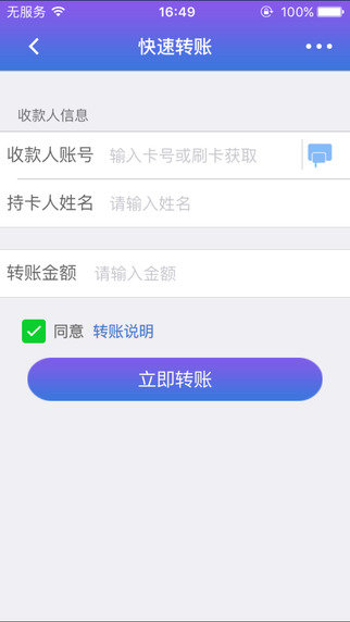 3、快速转账:为客户提供全国范围,同城或异地,同行或跨行转账汇款,需支付一定比例手续费。