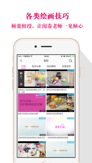 美术艺考宝是一款美术考生服务软件,你就会被这些热爱画画的同学们的一幅幅作品所震撼和感动,专业的九大美院老师在线语音点评指导同学们的作品,让同学们少走弯路,掌握绘画技巧,解答考试估分等问题。