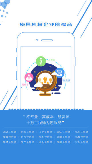 把模具上下游企业内部大量不具竞争力的工作交予企业外部的专业工程师完成,为企业快速提供模具设计、产品设计、外加工、设备和模具维修、专家咨询、稀缺资源等服务和商情,实现模具机械行业企业的需求与专业工程师的精准匹配,实时、高效对接。