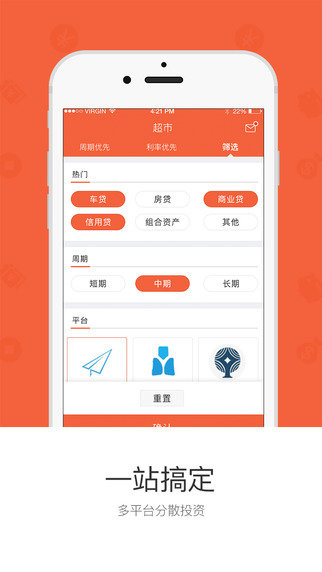【精选标的】:专业的风控团队多维度深入调研网贷平台,精选以国资背景,上市公司系平台,以抵押贷款的标的为主的新手标、短期标、长期标,年化收益8~18%,标的丰富、一站式解决您的投资需求、分散又安全
