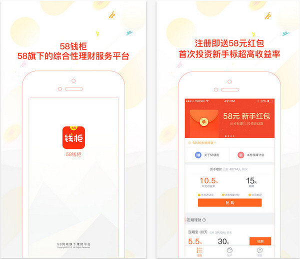 58钱柜是一款58同城旗下的综合性理财服务平台。完成任务领取体验金,体验金商城可换琳琅满目的奖品。同时还有恒丰银行存管,全程对账户资金保驾护航。